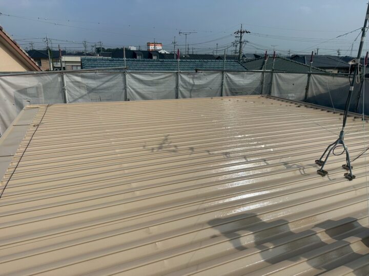 2025.09.03 更新 安城市 Tアパート 屋根塗装 ライトペイント髙井です。安城市、刈谷市、知立市を中心に西三河で外壁塗装、防水工事をしております。 宜しくお願い致します! 長く安心して住める住環境を整えましょう! 本日は屋根の上塗り塗装(仕上げ塗り)をしました。 前回までは錆止め塗装、中塗り塗装の刷毛とローラーまで終わっています。 本日の作業は上塗り塗装です。 完了写真です。 やっぱり3回しっかり塗ると艶が出てピカピカしてきれいですね! 普段見えないところなのでしっかり工場しないといけませんね! まだまだ暑い日が続きますが気を引き締めて頑張ります!!! 現場ブログ