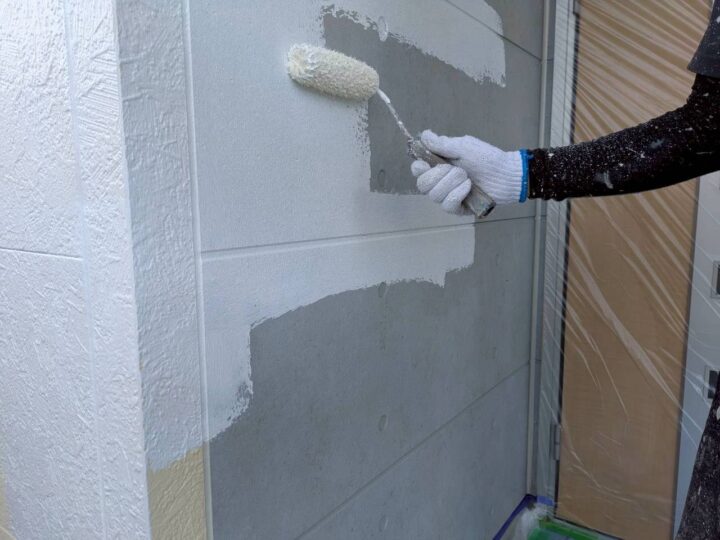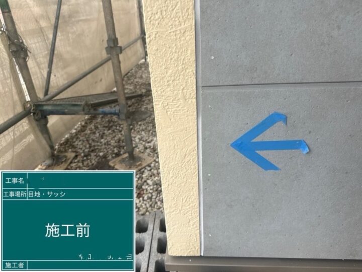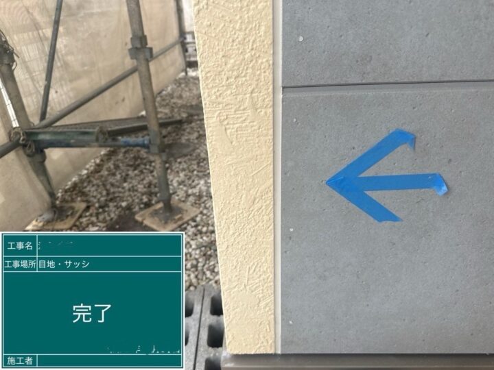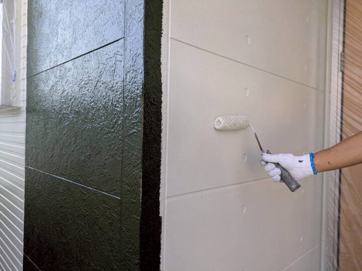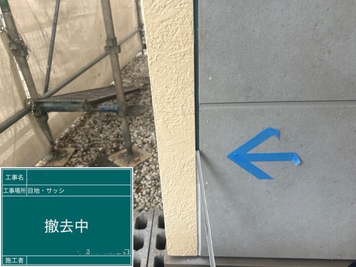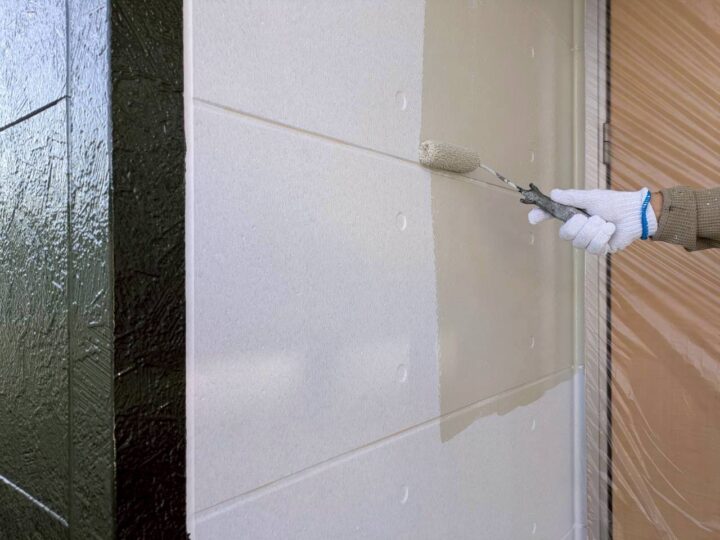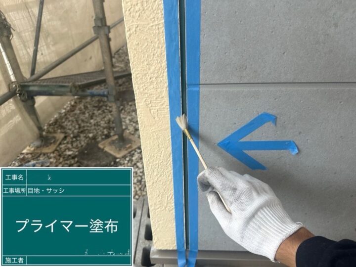 コーキング工事終了後にサッシ等を養生してフィラーを塗布します。